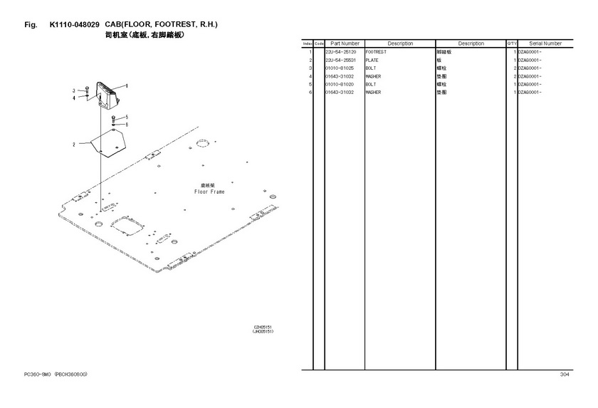- 司机室(底板,右工作装置的PPC阀安装)