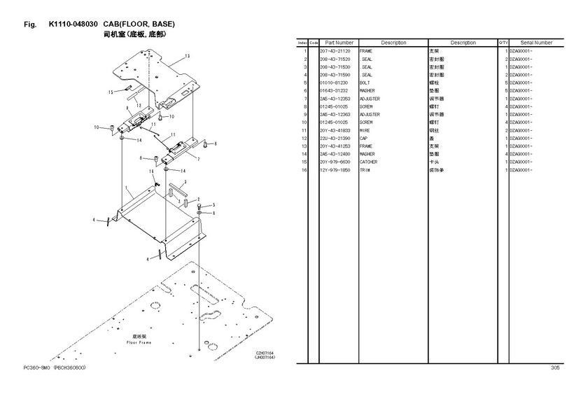 - 司机室(底板,左工作装置的PPC阀安装)