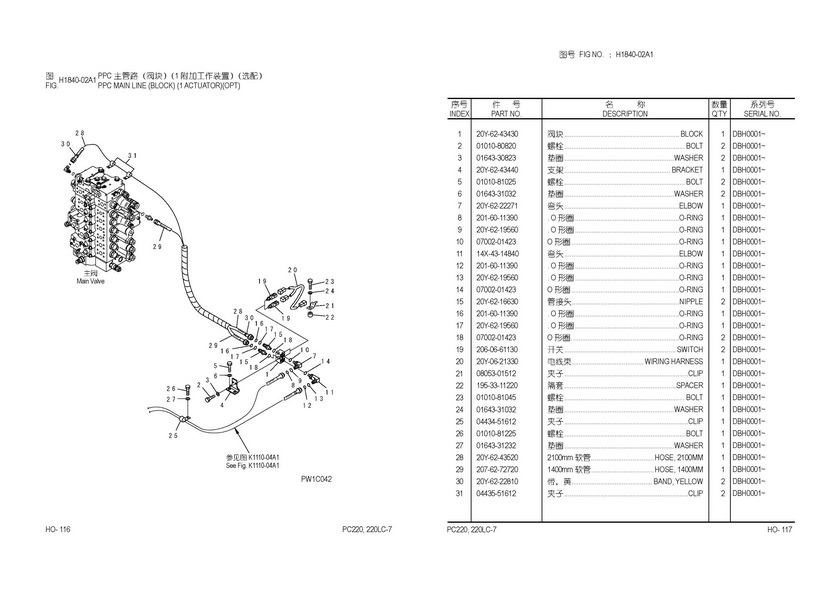 - PPC主管路(阀块)(1 附加工作装置)(选配)