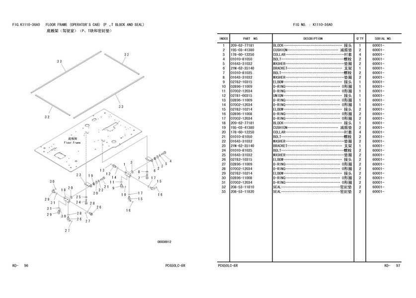 - 底板架(驾驶室)(P、T块和密封垫)