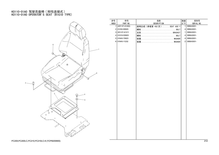 名称:20Y-57-41202 座椅总成 参看第 432 页