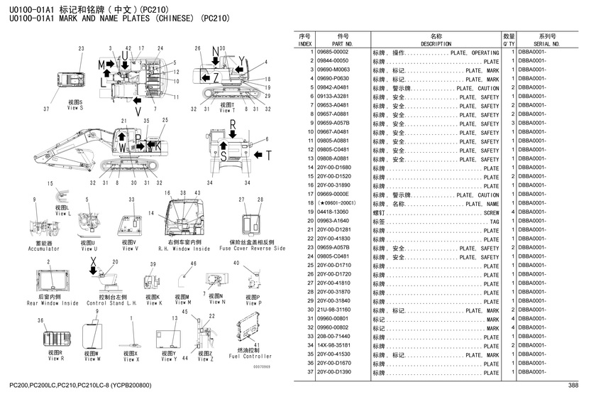 - MARK AND NAME PLATES PC200LC