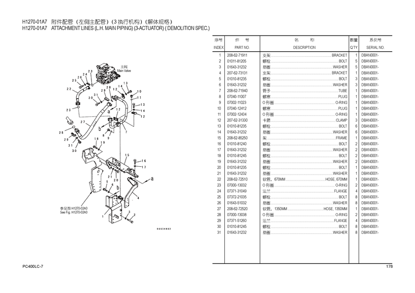 Name:208-62-72520 HOSE, 1350MM